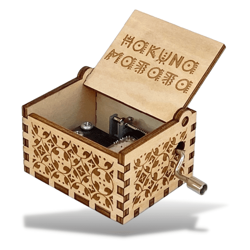 Wie kent de beroemde leus van Pumbaa en Timon niet: “Hakuna Matata“? Deze woorden belichamen de geest van De Leeuwenkoning perfect, betekenend “geen zorgen” in het Swahili, ze roepen positiviteit, onbezorgdheid en geluk op. Gelukkig is onze Houten Muziekdoos van De Leeuwenkoning (Hakuna Matata) ontworpen om je te herinneren aan het loslaten van je zorgen. Herontdek “The Lion Sleeps Tonight”, een tedere en onvergetelijke melodie van de derde film, oorspronkelijk gecomponeerd door “The Tokens”. Geef je over aan de betoverende melodie en laat je zorgen vervagen. Deze muziekdoos is het remedie om je hart en geest te kalmeren.
